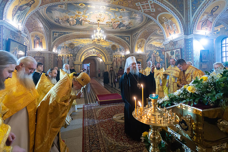 В завершение Литургии состоялось славление святителю Иоасафу Белгородскому, после чего иерарх произнес слово поучения.