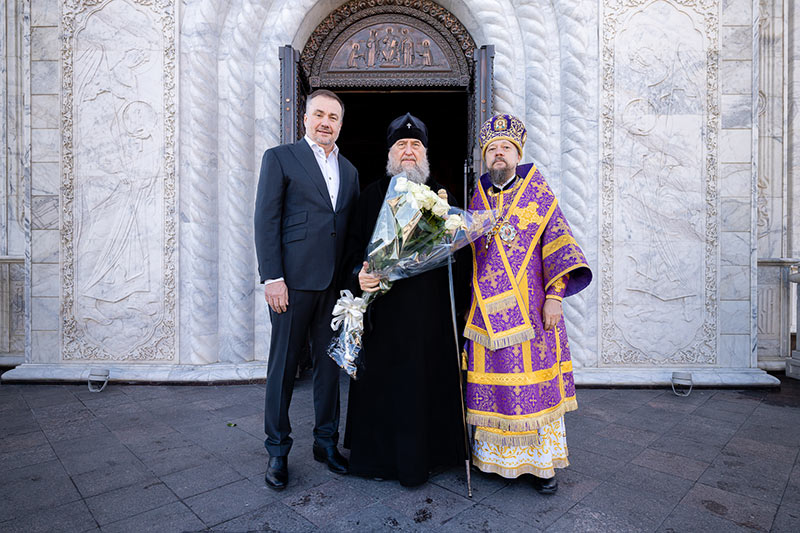 Его Высокопреосвященство поздравил епископа Геннадия с днем рождения и подарил архипастырю икону Спасителя с предстоящими первоверховными апостолами Петром и Павлом. Владыка викарий поблагодарил Предстоятеля Православной Церкви Казахстана за радость общей молитвы и постоянное попечение о Владимирском приходе.