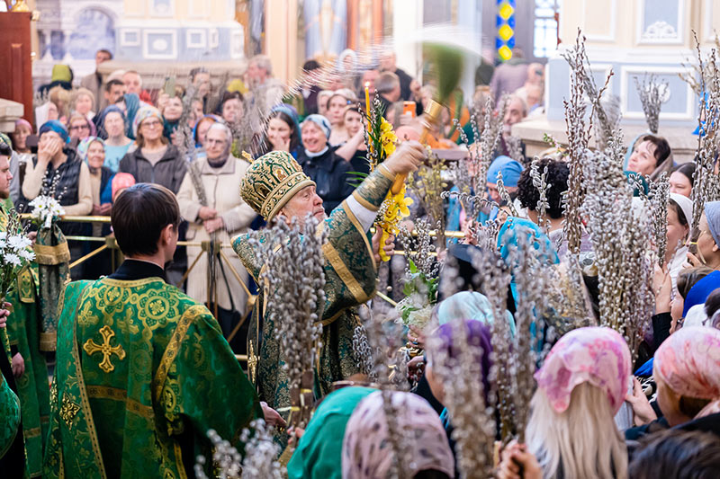 На утрени, по прочтении евангельского зачала митрополит Александр совершил чин освящения ваий – ветвей вербы и ивы, в воспоминание торжественного входа Царя Славы Господа Иисуса Христа в Иерусалим на вольные страдания. Во время чтения 50-го псалма архипастырь совершил каждение ваий, прочитал молитву на их благословение: «Господи Боже наш, седяй на Херувимех…», и затем окропил ветви, принесенные молящимися, святой водой с произнесением слов: «Освящаются ваия сия, окроплением воды сея священныя, во Имя Отца и Сына и Святаго Духа».