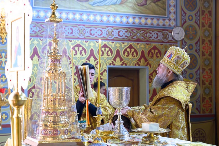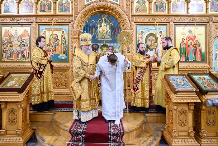 После евхаристического канона митрополит Александр совершил диаконскую хиротонию Андрея Ивашинина, референта Алма-Атинского епархиального управления.