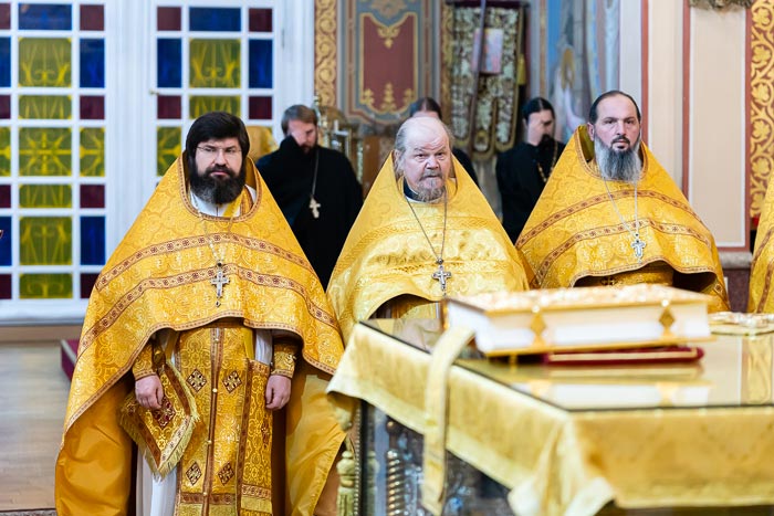 Его Высокопреосвященству сослужили: викарии Астанайской епархии – управляющий делами Казахстанского Митрополичьего округа епископ Каскеленский Геннадий, епископ Талдыкорганский Клавдиан и епископ Талгарский Вениамин; благочинный приходов Алма-Аты, настоятель Никольского собора протоиерей Валерий Захаров; благочинный Астанайского церковного округа архимандрит Сергий (Карамышев), настоятель храма в честь иконы Божией Матери «Всех скорбящих Радость» протоиерей Евгений Воробьев, духовник Алма-Атинской епархии архимандрит Иоанн (Сазонов), архимандрит Гавриил (Тутберидзе), клирик Вознесенского кафедрального собора Южной столицы протоиерей Александр Иевлев, ключарь Успенского кафедрального собора города Астаны протоиерей Димитрий Байдек, ключарь Константино-Еленинского собора протоиерей Сергий Калиев, благочинный Илийского церковного округа протоиерей Александр Зырянов, протоиерей Димитрий Сидоров, руководитель личного секретариата митрополита иеромонах Прохор (Ендовицкий); протодиакон Николай Гринкевич, руководитель службы протокола митрополита протодиакон Роман Головин, протодиакон Владимир Сыровацкий, диакон Андрей Плетень, иеродиакон Софония (Мазуренко), диакон Александр Пивень, диакон Сергий Слесарчук.