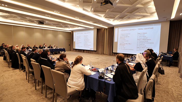 На заседании с докладами выступили: сотрудница секретариата ОВЦС по межхристианским отношениям М.Б. Нелюбова, ключарь Христорождественского храма Алма-Аты протоиерей Александр Гайченя, руководитель отдела по делам молодежи Каменской епархии священник Вячеслав Инюшкин (Екатеринбургская митрополия), руководитель общественного фонда «Казахстан без наркотиков» протоиерей Анатолий Измеров, председатель комиссии Казахстанского митрополичьего округа по благотворительности и социальному служению протоиерей Вячеслав Пугачев, префект Межъепархиальной высшей духовной семинарии Католической Церкви в Казахстане священник Томас Пысь, председатель отдела церковной благотворительности и социального служения Павлодарской епархии священник Сергий Голубничий, представитель Чимкентской епархии Е.Ю. Карабаева, старшая сестра Сестричества во имя святых царственных страстотерпцев А.А. Белимова, директор и главный врач Центральной клинической больницы имени святителя Алексия, митрополита Московского, А.Ю. Заров, благочинная Марфо-Мариинской обители милосердия города Москвы монахиня Севастиана (Альджанова), руководитель благотворительных программ Марфо-Мариинской обители милосердия И.В. Щербакова, духовник обители милосердия во имя преподобного Сергия Радонежского в поселке Туймебаева священник Андрей Распопин, руководитель направления защиты материнства и детства в Сестричестве святых царственных страстотерпцев Г.А. Галкина.