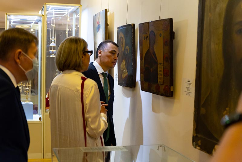 После знакомства с экспозицией митрополит Александр и министр А.К. Умаров вместе с руководством музея обсудили вопросы дальнейшего сотрудничества в области культуры и искусства.