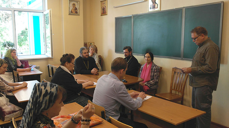 В рамках встречи прозвучали доклады, подготовленные выпускниками курсов: «Сошествие Святого Духа на апостолов» (М.А. Позднухов), «Церковь как Небо на земле» (С.Ю. Кутов и Т.В. Батурина), «Церковь – корабль спасения» (Ж.Ю. Нисанова) и «О благодарности человека Богу» (Н.С. Крютченко и А.В. Пак).