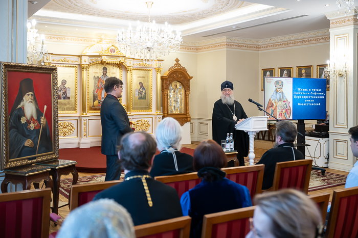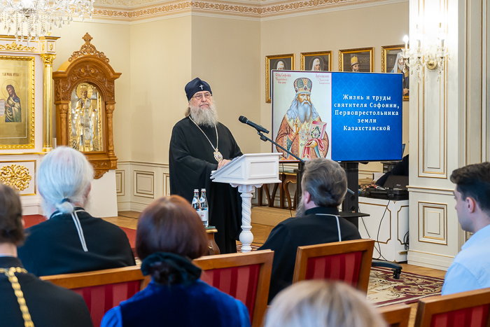 Владыка митрополит рассказал о результатах современного этапа научных исследований жизни и трудов архиепископа Софонии на земле Казахстана на основании обнаруженных архивных документов. «Главные подвиги, увенчавшие праведную жизнь архипастыря, он совершил, будучи управляющим новообразованной Туркестанской епархии. Бесстрашно он совершал путешествия, преодолевая огромные расстояния ради просвещения словом Евангелия своей паствы и еще пребывающих во мраке языческих суеверий кочевых племен. Преосвященного владыку Софонию можно назвать человеком, который творил новейшую церковную историю в Центральной Азии. На всяком месте и во всякое время архипастырь проявлял свои дарования и необычайную силу духа. Он организовал работу консистории, создал хор, строил и обустраивал храмы, занимался обучением кандидатов в священнослужители, находил время подготавливать к печати свои научные труды. Святитель оставил после себя богатое интеллектуальное и духовное наследие, значимой частью которого стали его обращения, проповеди, слова и речи. Два тома проповедей были изданы при жизни иерарха в 1876 году. Его поучения – яркий памятник проповеднического искусства ХІХ столетия. По содержанию слова и речи святителя можно отнести к разряду нравственно-практических, все они наполнены разъяснением заповедей Священного Писания и церковных установлений, а нередко содержат и обличения. Будучи сам строгим исполнителем Божественного Закона, он горячо и искренне желал, чтобы и его слушатели были такими же ревностными в духовной жизни людьми».