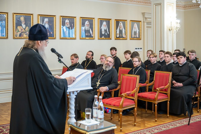23 сентября 2025 года. Алма-Ата. В тронном зале духовно-культурного и административного центра имени митрополита Иосифа (Чернова) митрополит Астанайский и Казахстанский Александр, профессор кафедры церковной истории Алма-Атинской семинарии, прочитал лекцию для студентов и преподавателей духовной школы.