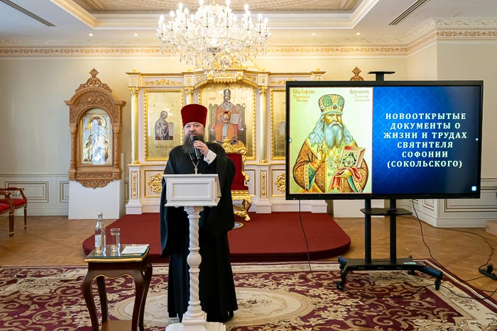 Протоиерей Евгений Иванов поздравил присутствующих с началом работы конференции, отметив историческую и духовную значимость мероприятия. Ректор духовной школы зачитал доклад митрополита Астанайского и Казахстанского Александра «Новооткрытые документы о жизни и трудах святителя Софонии (Сокольского)».