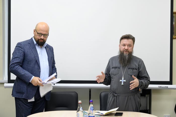 В ходе работы заседания состоялась встреча преподавательской корпорации с руководителем общественного фонда «Апостол» Г.Г. Сосновским. Георгий Геннадиевич рассказал присутствующим о ходе реализации совместных проектов семинарии и возглавляемого им благотворительной организации.