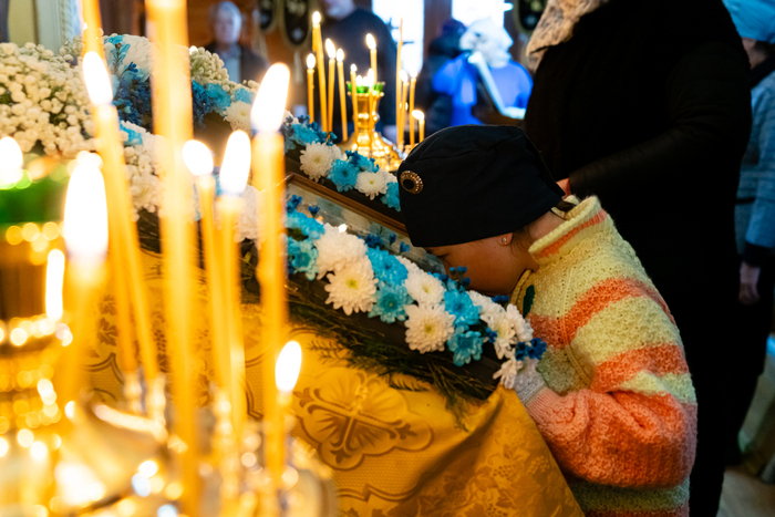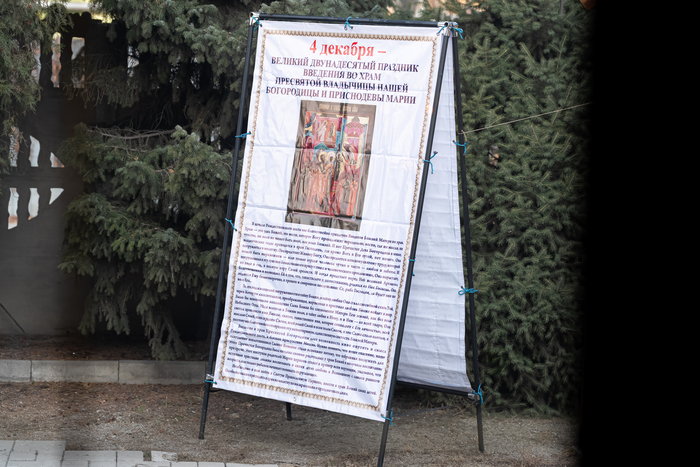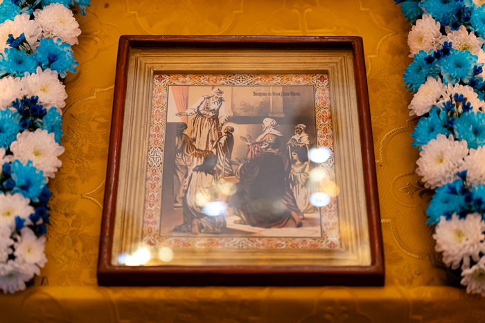 В завершение Литургии перед иконой Введения Пресвятой Богородицы во храм состоялось славление празднику, после чего отец настоятель передал богомольцам благословение митрополита Астанайского и Казахстанского Александра, поздравил президента и сотрудников фонда «ELEOS-MEIRIM» и верующих с двунадесятым богородичным праздником и произнес проповедь.