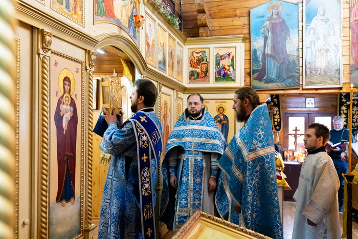 Литургию совершил настоятель храма иерей Кирилл Шкляр в сослужении иерея Богдана Бойко и диакона Иоанна Чуркина.