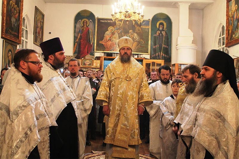 Вечером того же дня епископ Амфилохий совершил в сослужении епархиального духовенства великую вечерню в главном храме Усть-Каменогорска.