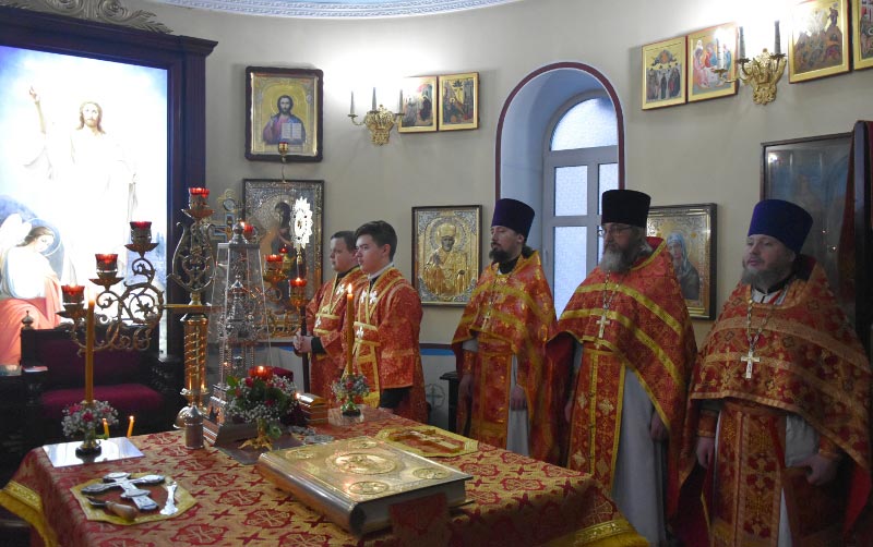 Иерарху сослужили: секретарь епархии протоиерей Сергий Первушин, благочинный Кызылжарского церковного округа протоиерей Дмитрий Жульсарин, духовник Петропавловской епархии иерей Александр Дениченко, благочинный Мамлютского церковного округа иерей Евгений Столяров, настоятель храма во имя священномученика Мефодия Петропавловского иерей Алексий Щербенко, ключарь храма Всех Святых иерей Антоний Шувакин, благочинный Вознесенского кафедрального собора иерей Михаил Березин, клирики храма и городское духовенство.