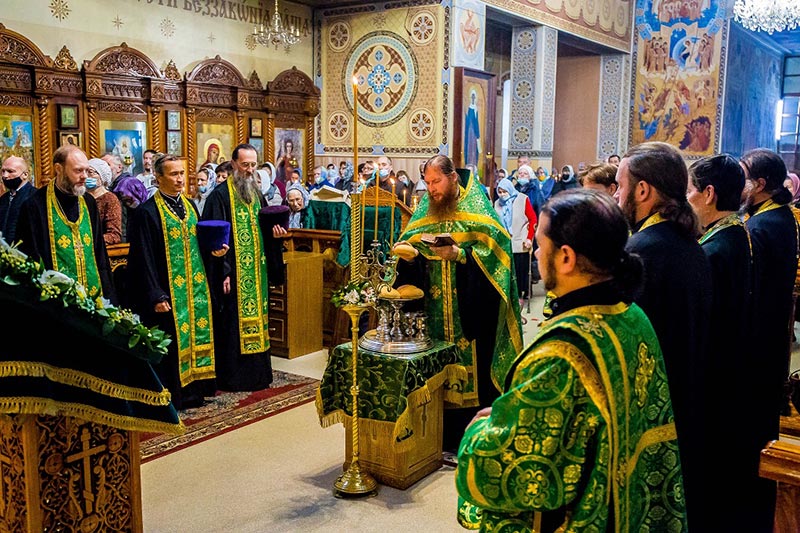 На заупокойной ектении возносились сугубые молитвы о приснопамятных родителях преподобного Севастиана Карагандинского – рабах Божиих Василии и Матроне, его братьях – монахе Рафаиле и иноке Илларионе; о православных христианах «в годину лютых гонений от безбожников умученных и убиенных, от голода, холода, ран, болезней и непосильных работ скончавшихся».