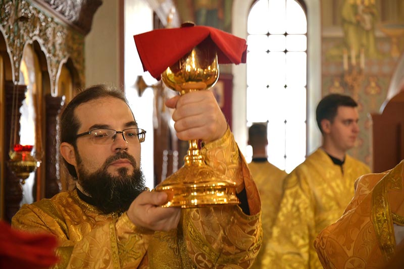 Архипастырю сослужили: протоиерей Владимир Глухих, игумен Гавриил (Тутберидзе); диаконский чин возглавил диакон Григорий Левченко.