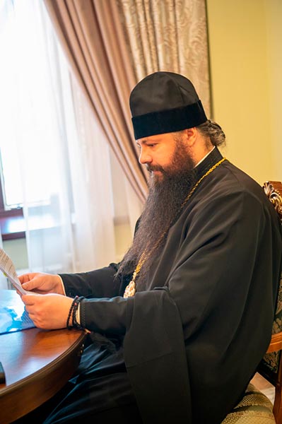 Перед началом работы иеромонах Геннадий огласил членам совета повестку предстоящего заседания, касающегося текущих вопросов жизни епархии.