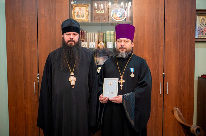 В завершение совещания во внимание к трудам на благо Православной Церкви Казахстана и в связи с 45-летием со дня рождения секретарь Костанайской епархии вручил медаль священноисповедника Николая, митрополита Алма-Атинского и Казахстанского протоиерею Алексию Мостовщикову.