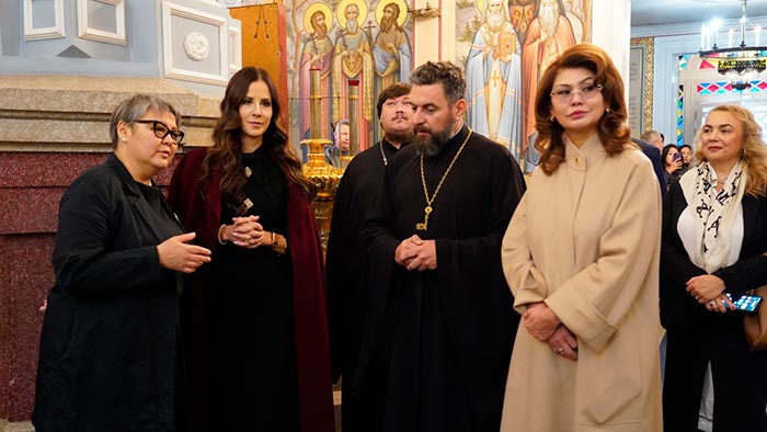 Во время экскурсии гостья узнала о деталях полномасштабной профессиональной реставрации храма, которая осуществлялась по инициативе и благословению митрополита Астанайского и Казахстанского Александра с 2017 по 2020 годы под контролем министерства культуры Республики Казахстан и ЮНЕСКО, с привлечением местных ученых и специалистов высокого уровня из России, Сербии, Италии, Германии и Франции.