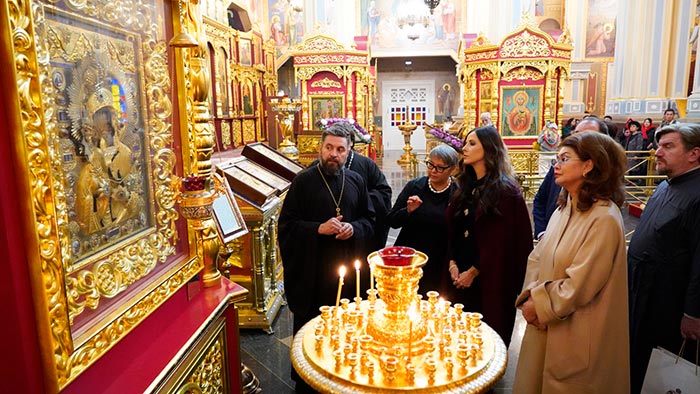 2 октября 2025 года. Алма-Ата. Историческую и духовную жемчужину Казахстана – Вознесенский кафедральный собор – посетила супруга Президента Республики Сербия Тамара Вучич.