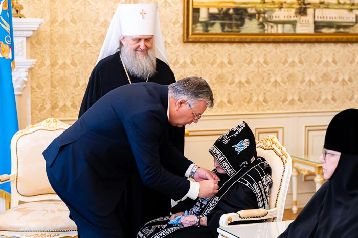 После обмена приветствиями Дмитрий Александрович вручил схимонахине Ирине (Любицкой) орден Дружбы. Генеральный консул пожелал матушке доброго здравия и благополучия.