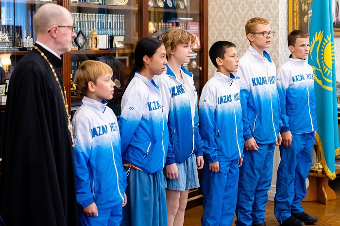 На встрече присутствовали: член Патриаршей комиссии по вопросам физической культуры и спорта игумен Филипп (Моисеев); духовник сборной, клирик Вознесенского кафедрального собора Алма-Аты протоиерей Александр Иевлев; руководитель службы протокола митрополита протодиакон Роман Головин, помощник митрополита диакон Даниил Пасюк.
