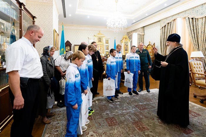 24 сентября 2025 года. Алма-Ата. В здании духовно-культурного и административного центра Казахстанского Митрополичьего округа имени митрополита Иосифа (Чернова) состоялась встреча митрополита Астанайского и Казахстанского Александра с участниками Международных спортивных игр имени святого благоверного князя Александра Невского и Международного форума «Вера и спорт».