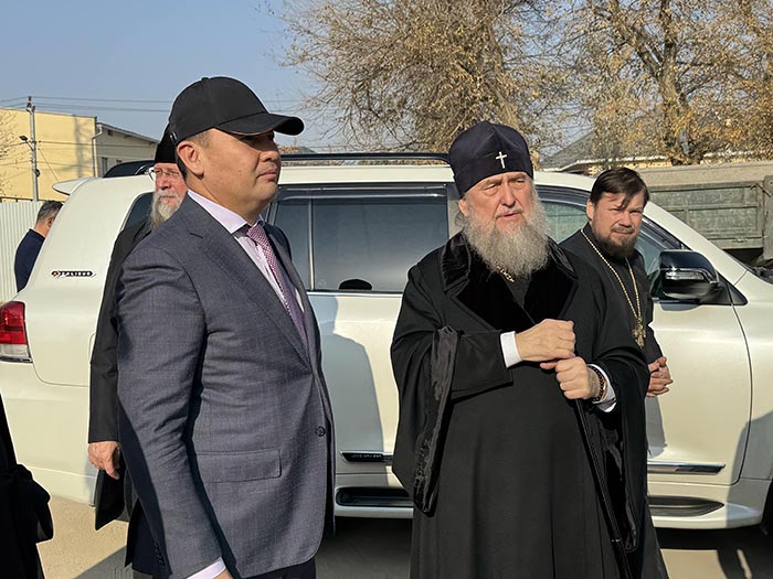 Его Высокопреосвященство сопровождали: епископ Чимкентский и Туркестанский Хрисанф, викарий Астанайской епархии епископ Талдыкорганский Клавдиан, духовенство Алма-Атинской и Чимкентской епархий.