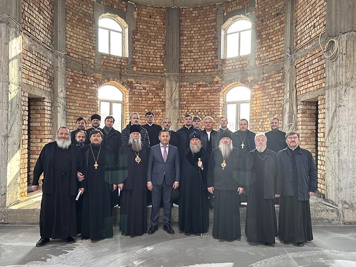 20 ноября 2025 года. Шымкент. Глава Казахстанского Митрополичьего округа митрополит Астанайский и Казахстанский Александр посетил строящийся по инициативе и по благословению Святейшего Патриарха Московского и всея Руси Кирилла. мемориальный храм в честь новомучеников Чимкентских.