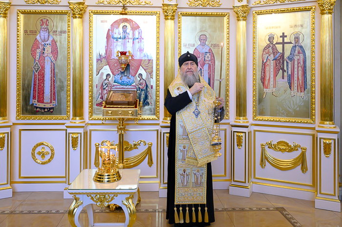 Литургия завершилась славлением перед ковчегом с частью Пояса Пресвятой Богородицы. Митрополит Александр и архипастыри осенили святыней четыре стороны света, призывая заступление Божией Матери на город Алма-Ату и всю Казахстанскую землю.