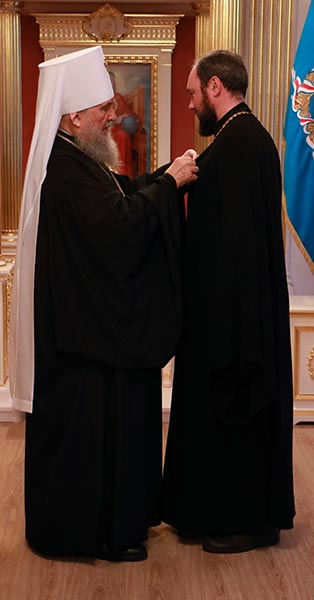 Медали священномученика Мефодия, епископа Петропавловского были удостоены: благочинный Астанайского церковного округа архимандрит Сергий (Карамышев), ключарь Успенского кафедрального собора протоиерей Димитрий Байдек.