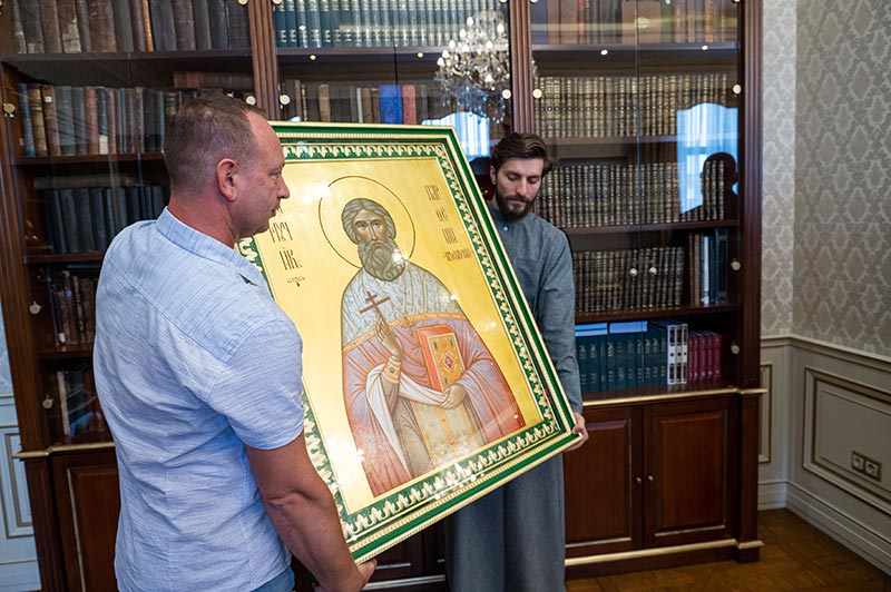 Георгий Геннадиевич в память о состоявшемся событии преподнес митрополиту Александру аналойную икону священномученика Парфения (Красивского), представляющую собой уменьшенную копию новосозданного храмового образа.