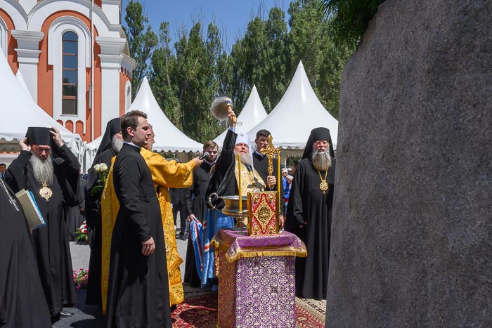 Освящение памятного знака на соборной площади приурочено к знаменательной дате – 20-летию учреждения Православной Церкви Казахстана.