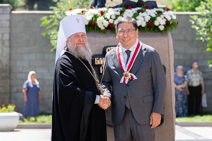 По случаю памятного события митрополит Александр вручил высокие награды Православной Церкви Казахстана за деятельность, направленную на сохранение в обществе традиционных духовных и культурных ценностей: