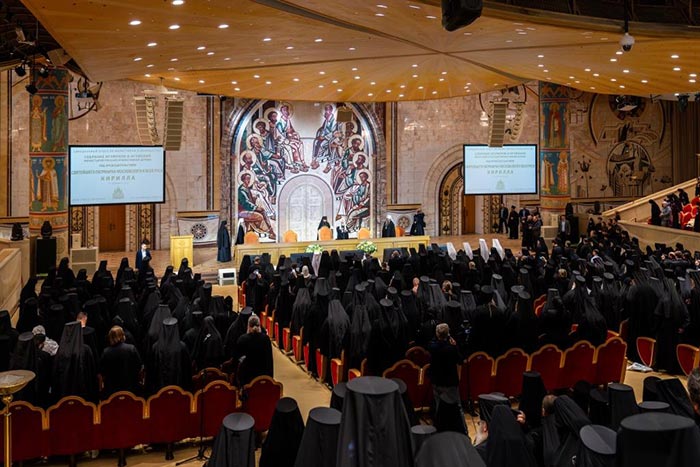 23 сентября 2025 года в Зале церковных соборов кафедрального соборного Храма Христа Спасителя в Москве Святейший Патриарх Московский и всея Руси Кирилл возглавил работу Собрания игуменов и игумений монастырей Русской Православной Церкви.