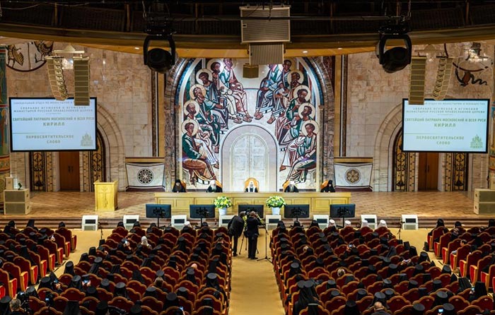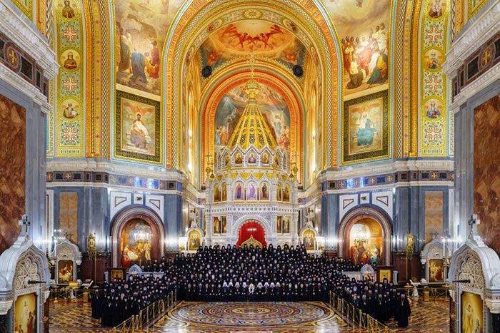Перед началом заседания в нижней Преображенской церкви Храма Христа Спасителя была совершена Божественная литургия.