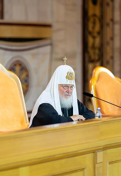 Предстоятель Русской Православной Церкви выступил с основным докладом.