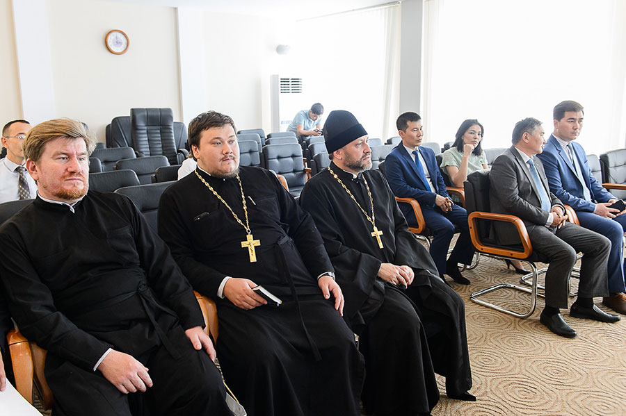 Глава Митрополичьего округа проинформировал акима о целях своего визита в Западный Казахстан, главная из которых – принесение великих святынь православного мира – части Пояса Пресвятой Богородицы и мощей преподобного Серафима Саровского, одного из самых почитаемых русских святых. Иерарх отметил, что это событие в церковной жизни области состоялось в рамках празднования в Республике значимой исторической даты – 15-летия установления Собора новомучеников и исповедников Казахстанских. Собеседники сошлись во мнении, что увековечивание памяти пострадавших за веру в годы безбожной власти, способствует сохранению базовых моральных и культурных ценностей народа Казахстана, формированию в обществе патриотизма и укреплению духовно-нравственных идеалов и, в особенности, воспитанию подрастающего поколения.