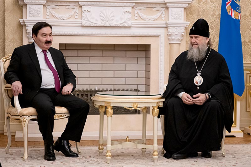 Митрополит Александр рассказал Булату Сергазиевичу о жизни Православной Церкви Казахстана и проведении в Республике просветительских, молодежных и социально-благотворительных мероприятий, осуществляемых в рамках празднования 150-летия учреждения Туркестанской епархии. Архипастырь проинформировал гостя о своих рабочих поездках в Усть-Каменогорскую, Актюбинскую и Павлодарскую епархии Казахстанского Митрополичьего округа.