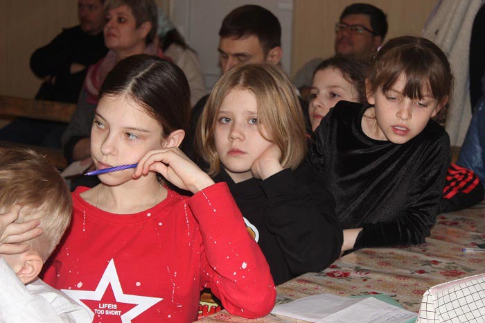 Затем в течение двух часов ребята соревновались в многоэтапной викторине, включавшей в себя тесты, задачи и настольные игры.