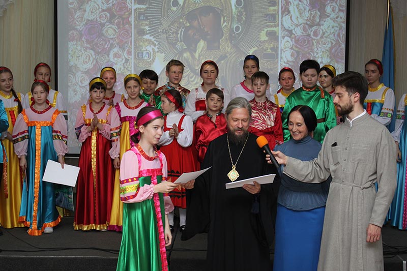 Открывая праздничную программу, воспитанницы Центральной воскресной школы исполнили духовный кант о Феодоровской иконе на стихи епископа Каскеленского Геннадия, тропарь и кондак праздника Пресвятой Троицы, а также некоторые песнопения, посвященные Божией Матери.